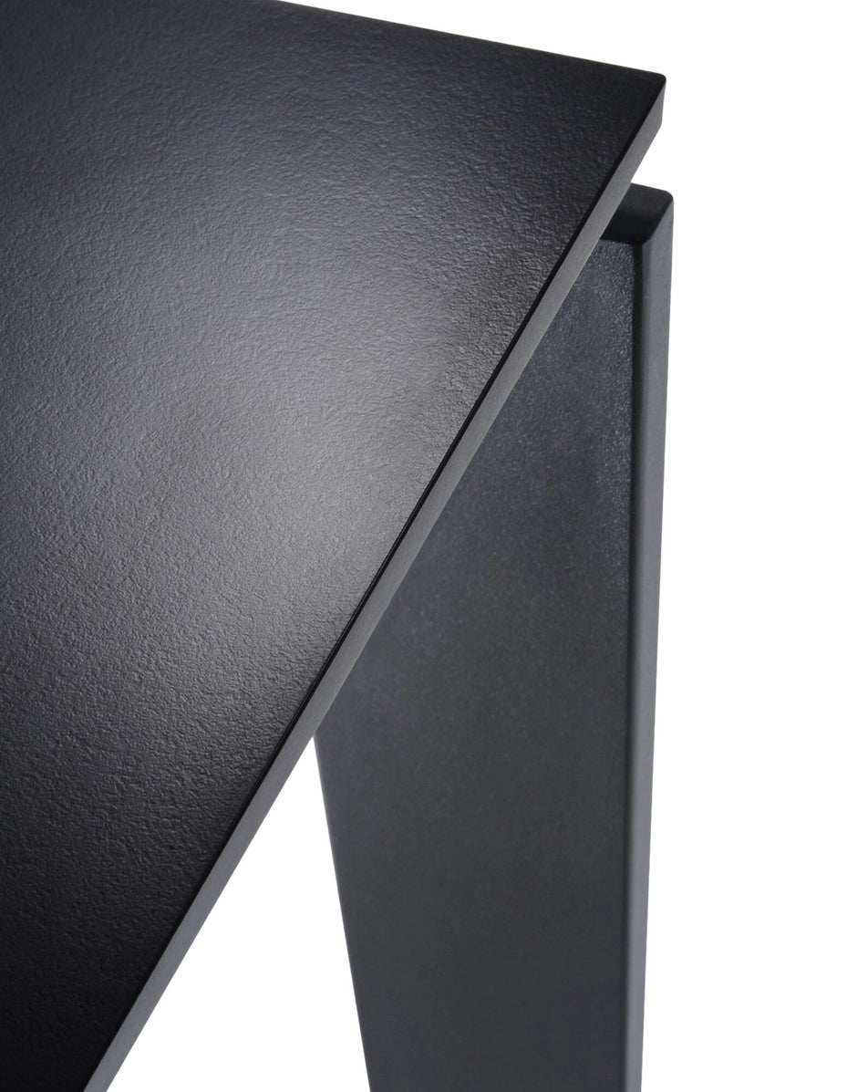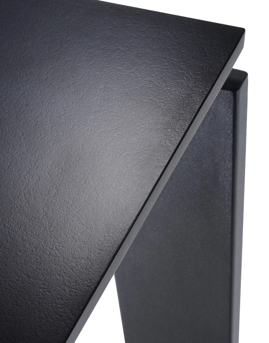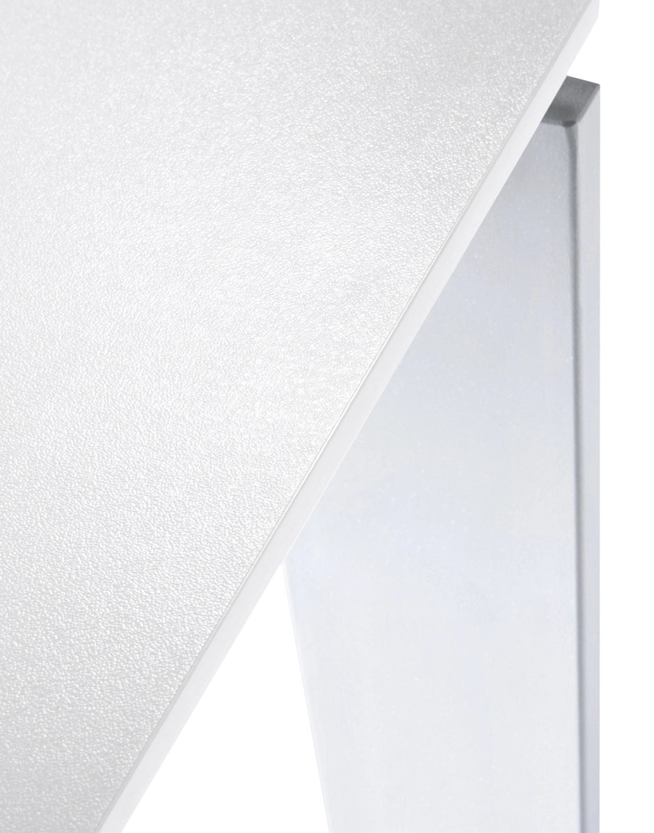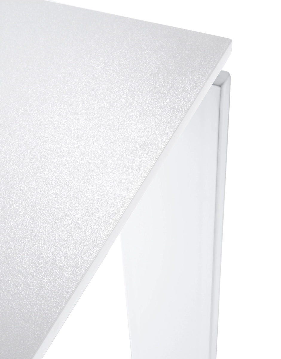 Una mesa funcional y refinada, con un diseño riguroso y geométrico. Gracias a una elegante solución del proyecto la posición del delgado tablero permite colocar fácilmente cajoneras o muebles contenedores para soportes informáticos. En oficinas se puede utilizar combinando varios elementos para componer zonas operativas.