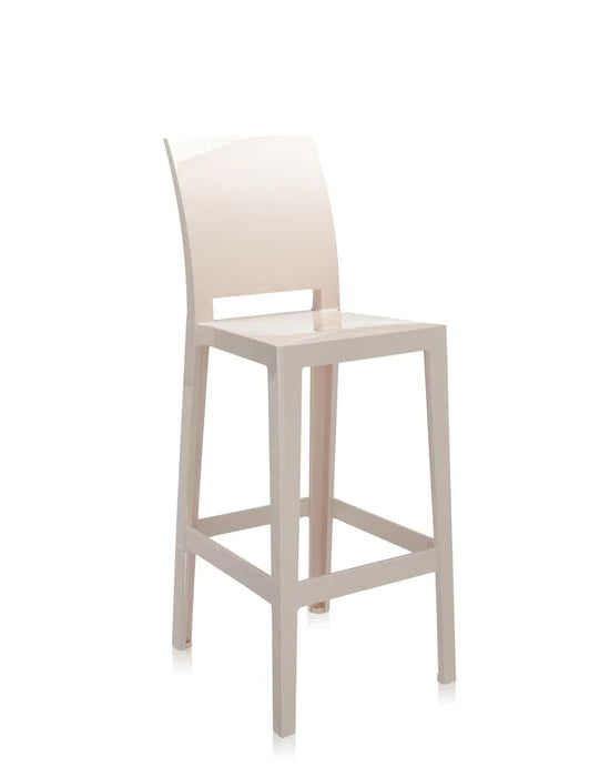 One more y One more please son los taburetes ágiles, prácticos, llenos de color y resistentes de la familia “Ghost”, que están disponibles en dos alturas (65 cm o 75 cm) y respaldos ovalados o cuadrados.