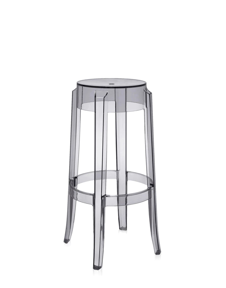 | Charles Ghost es el taburete que imita los asientos del siglo XIX. La línea de la pata redondeada y ligeramente ondulada es representativa del taburete clásico. Está disponible en tres alturas distintas: desde el taburete para un encuentro informal y ocasional hasta el taburete para la barra de la cocina o del bar. Se adapta a ambientes de interior y exterior. |